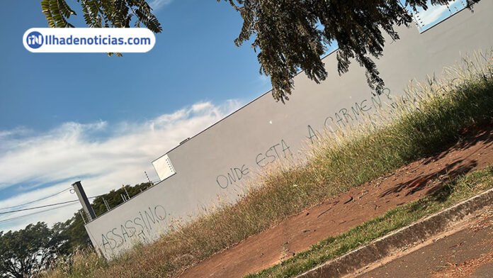 Nas pichações estão a palavra “assassino” e a frase “onde está a Carmen?”. O imóvel fica localizado no bairro Nova Ilha, em Ilha Solteira. A pichação teria acontecido na madrugada de sábado (19).