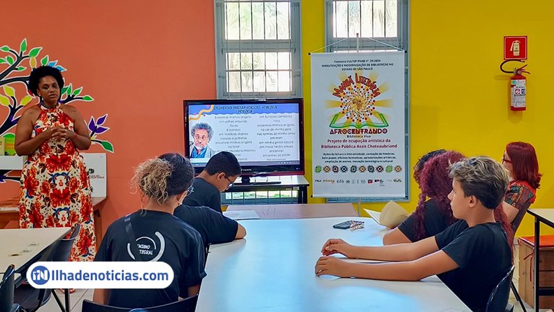 A Biblioteca Municipal Assis Chateaubriand, em Ilha Solteira, recebeu o bate-papo “Da Pele ao Papel: Escrevivências Negras e a Potência da Autonarrativa”, conduzido por Manoela Fernanda Matos. A atividade integrou a programação do projeto Manhã Literária – Afrocentrando.