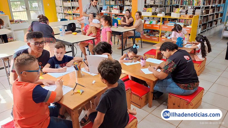 Após a leitura, os arte-educadores propuseram uma atividade lúdica com as crianças, incentivando a expressão criativa a partir dos temas trabalhados nos livros.