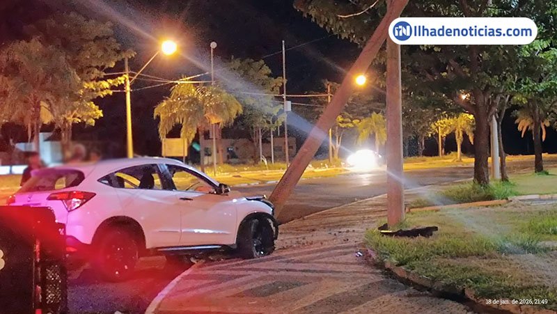 De acordo com o Boletim de Ocorrência registrado pela Polícia Civil, o condutor relatou que perdeu o controle do veículo ao passar pela rotatória, por motivo não informado, vindo a atingir o poste. Com o impacto, uma palmeira existente no local também foi derrubada.