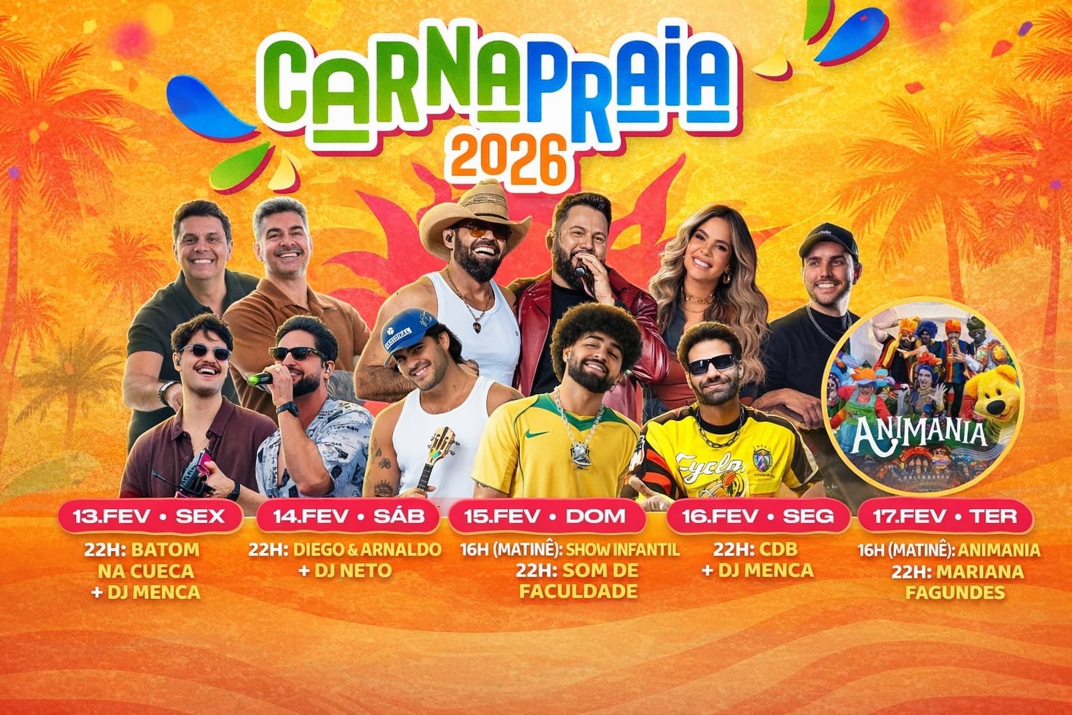 🎶 Programação de shows – Carna Praia 2026