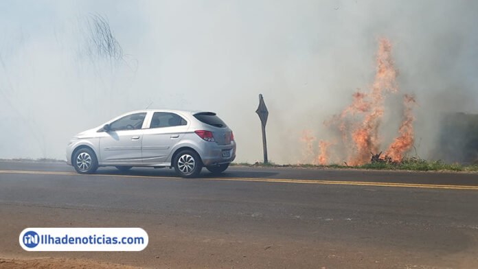 A situação é resultado da baixa umidade do ar e a falta de chuva (já são 96 dias sem chuva em Ilha Solteira), combinação perfeita para o surgimento de incêndios em área de vegetação e terrenos baldios.