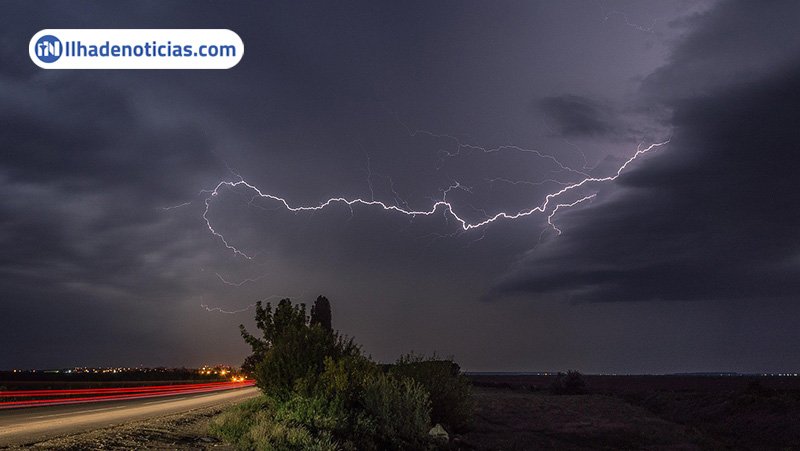 Raios intensos, comuns na região noroeste durante tempestades severas;