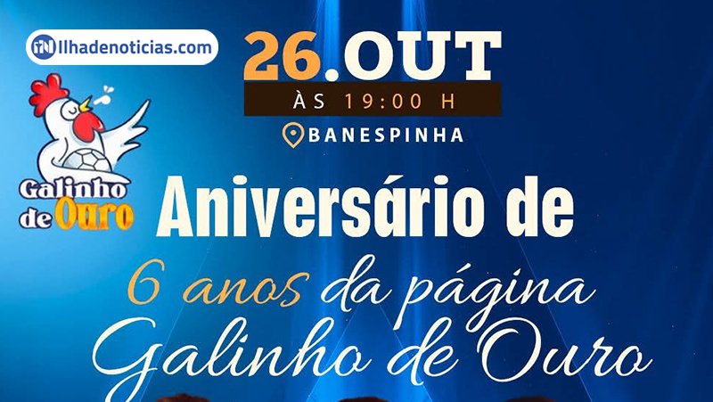 O perfil “Galinho de Ouro”, do Giba, comemora seis anos de atividade com um grande Bailão neste domingo, 26 de outubro, a partir das 19h, no Banespinha.