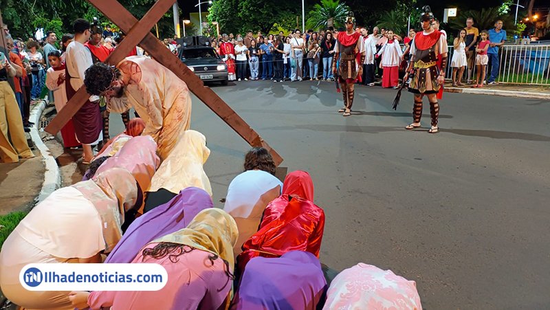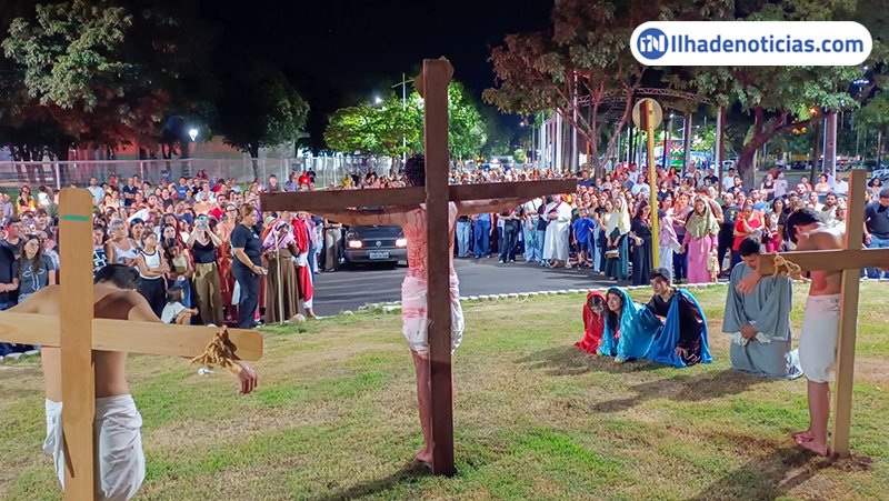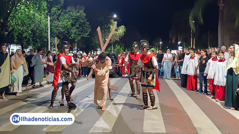 A comunidade católica viveu momentos de fé e emoção na noite desta sexta-feira (3), coma encenação da Via-sacra, durante a tradicional Procissão do Senhor Morto. A celebração reuniu fiéis que acompanharam, com atenção e devoção, ao longo do percurso pelo centro da Avenida Brasil.