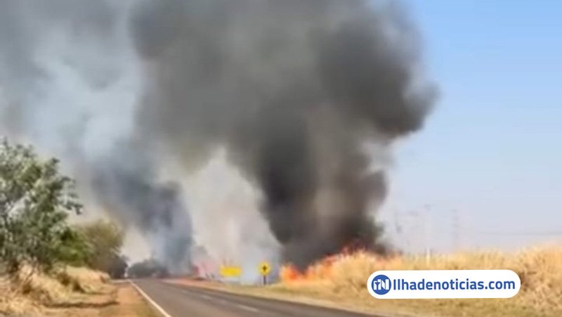 Um incêndio de grandes proporções, que teve início por volta das 13h, no Km 36 da Rodovia Gerson Dourado de Oliveira, entre Itapura e Ilha Solteira, vem consumindo uma grande área. O trânsito está interrompido na região.
