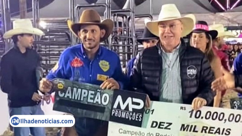 Na grande final, ele montou a potra Distância, da Cia de Rodeio Monte Cristo, o título da competição.