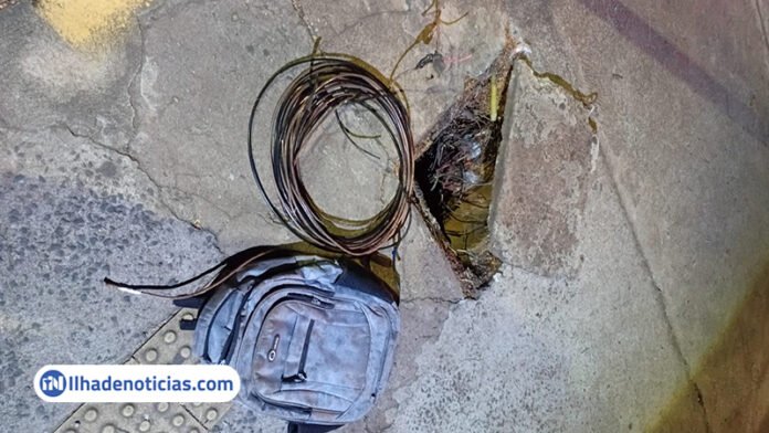 De acordo com a corporação, a ocorrência foi registrada durante patrulhamento de rotina, quando os guardas Queiroz e Afonso flagraram o suspeito no momento em que retirava a fiação da rede pública.