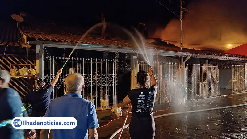 Um incêndio de grandes proporções destruiu duas casas e danificou outras duas na noite de terça-feira (21), no Passeio Tijucas, zona sul de Ilha Solteira. Felizmente, ninguém ficou ferido.