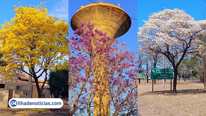 Símbolo de Ilha Solteira, o ipê — especialmente o rosa, o mais frequente na cidade — ganha protagonismo quando suas variações em amarelo e branco aparecem juntas, formando um contraste que emociona e valoriza a arborização urbana.