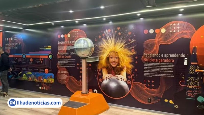 Entre as atrações mais disputadas estão o Gerador de Van de Graaf, que faz o cabelo “arrepiar” com eletricidade estática; a bicicleta ergométrica que produz energia; uma maquete tridimensional do núcleo da Terra; e uma instalação sonora que reproduz o canto de 30 espécies de aves brasileiras. Tudo pensado para fazer o público aprender ciência de forma divertida, prática e envolvente.