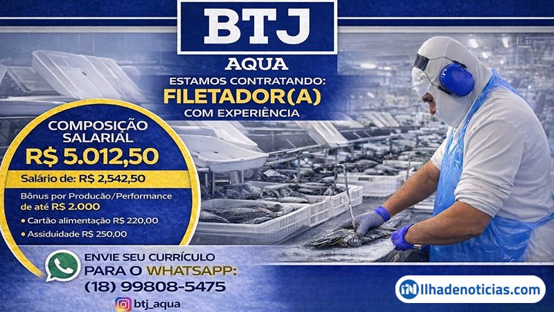 A BTJ FOODS, empresa que atua no segmento de pescados — especializada na produção e processamento de tilápia —, está com vaga de emprego aberta.