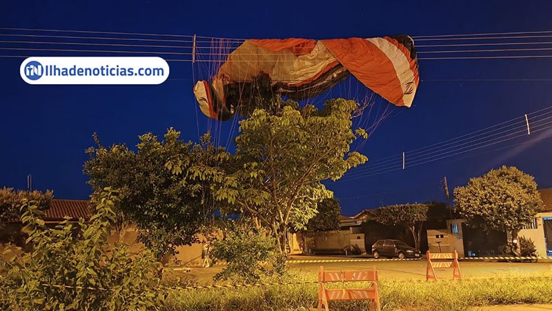 Com o impacto, a vela — estrutura semelhante a um paraquedas — ficou presa na fiação, enquanto a cadeira com o motor acabou enroscada entre duas árvores. O piloto conseguiu descer em segurança, sem sofrer ferimentos.