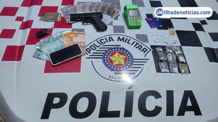 A Polícia Militar prendeu um homem nesta quinta-feira (1º) na Praia Catarina, em Ilha Solteira, por porte de drogas e dinheiro falso. A ocorrência contou com o apoio da Atividade Delegada, que reforça o policiamento com agentes em horário extra.