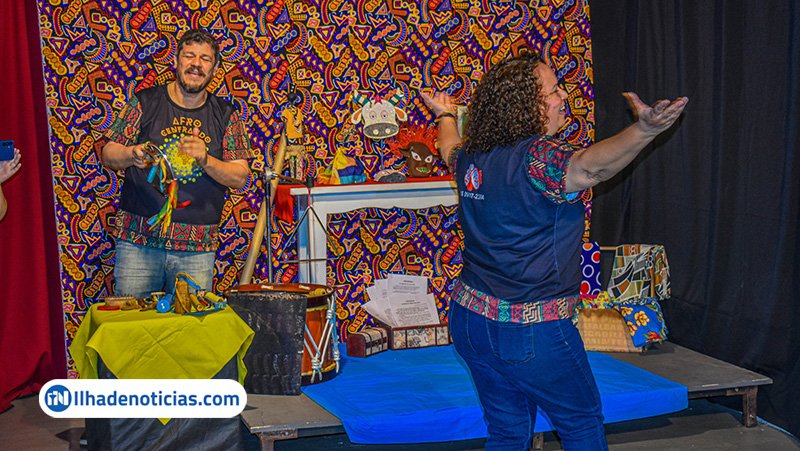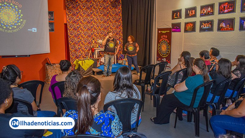 Professores participaram de uma ação do projeto “Afrocentrando”, da Cia. Melissa & Paulo, uma oficina de contação de histórias, com enfoque na história e cultura africana, ministrada pelos atores e arte-educadores Melissa Nascimento e Paulo Jordão. A ação, contemplada no Edital da Lei Paulo Gustavo, destinado a apoiar financeiramente projetos que tenham por objeto a manutenção de atividades de Pontos de Cultura do Estado de São Paulo.