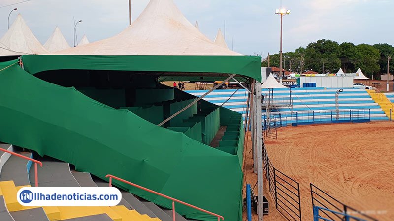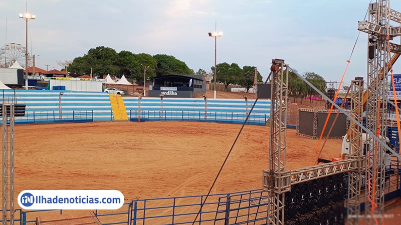 Na arena, a estrutura do rodeio já está concluída, assim como o camarote, que neste ano foi montado em um novo espaço. O palco principal também impressiona pela grandiosidade da montagem, que segue em ritmo acelerado.