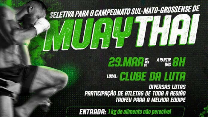 Selvíria será palco, neste domingo (29), de uma seletiva para o Campeonato Sul-Mato-Grossense de Muay Thai. O evento acontece a partir das 8h, no Clube da Luta, e deve reunir atletas de diversas cidades da região. A realização é da Prefeitura, por meio da Secretaria de Cultura.
