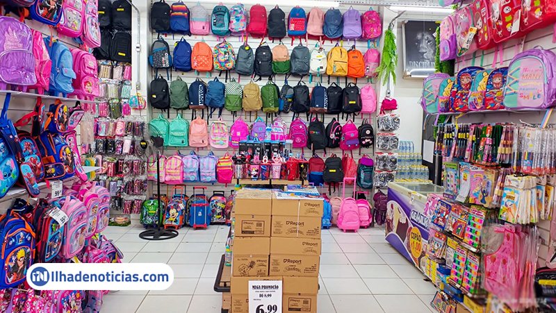 E não para por aí: o Shopping Multi Preços oferece também mochilas básicas e com personagens, modelos de costas e de rodinha, além de estojos simples e modelos box com divisórias, e garrafas de água comuns e térmicas.